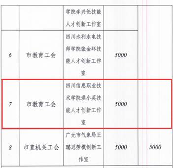 近日,广元市总工会印发《关于拨付2025年度劳模和工匠人才创新工作室创建补助的通知》,我院“洪小英技能人才创新工作室”成功入选,获得专项补助支持。