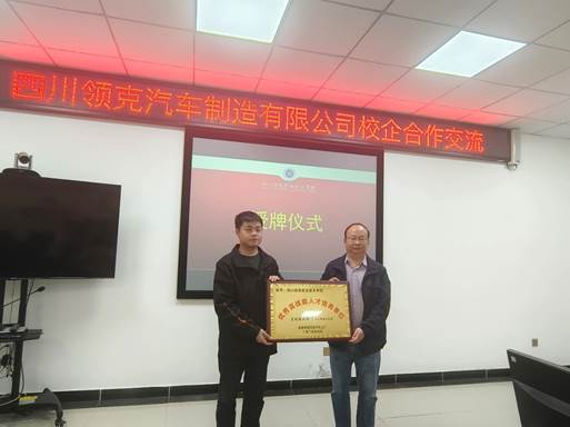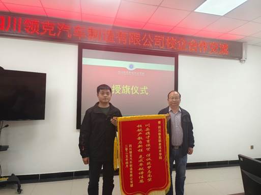 在交流过程中,双方就当前汽车行业的发展趋势、技术创新以及人才需求等方面进行了深入探讨。四川领克汽车制造有限公司对我院汽车专业2022级岗位实习工作作了深入总结,高度赞扬了我院学生作风优良、素养突出、技能过硬,在2022级岗位实习工程中踏实肯干,高效支援了公司在生产改革与提速,为深表感谢,现场赠送锦旗并授予“优秀高技能人才培养单位”的荣誉。